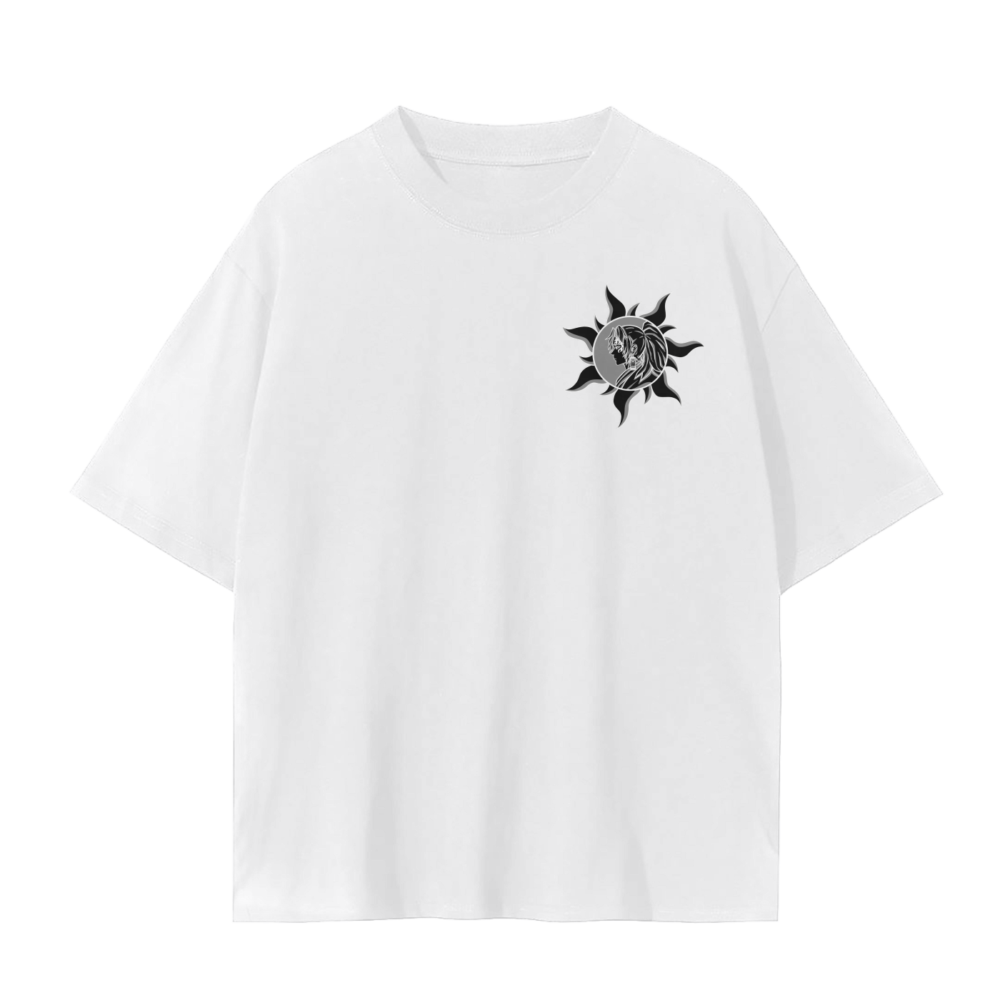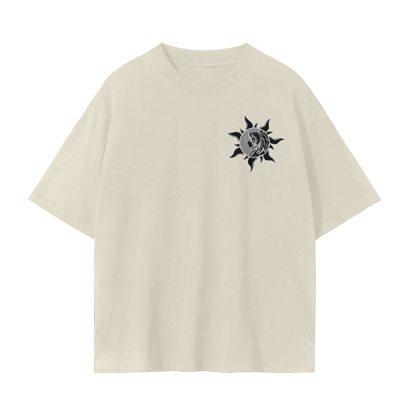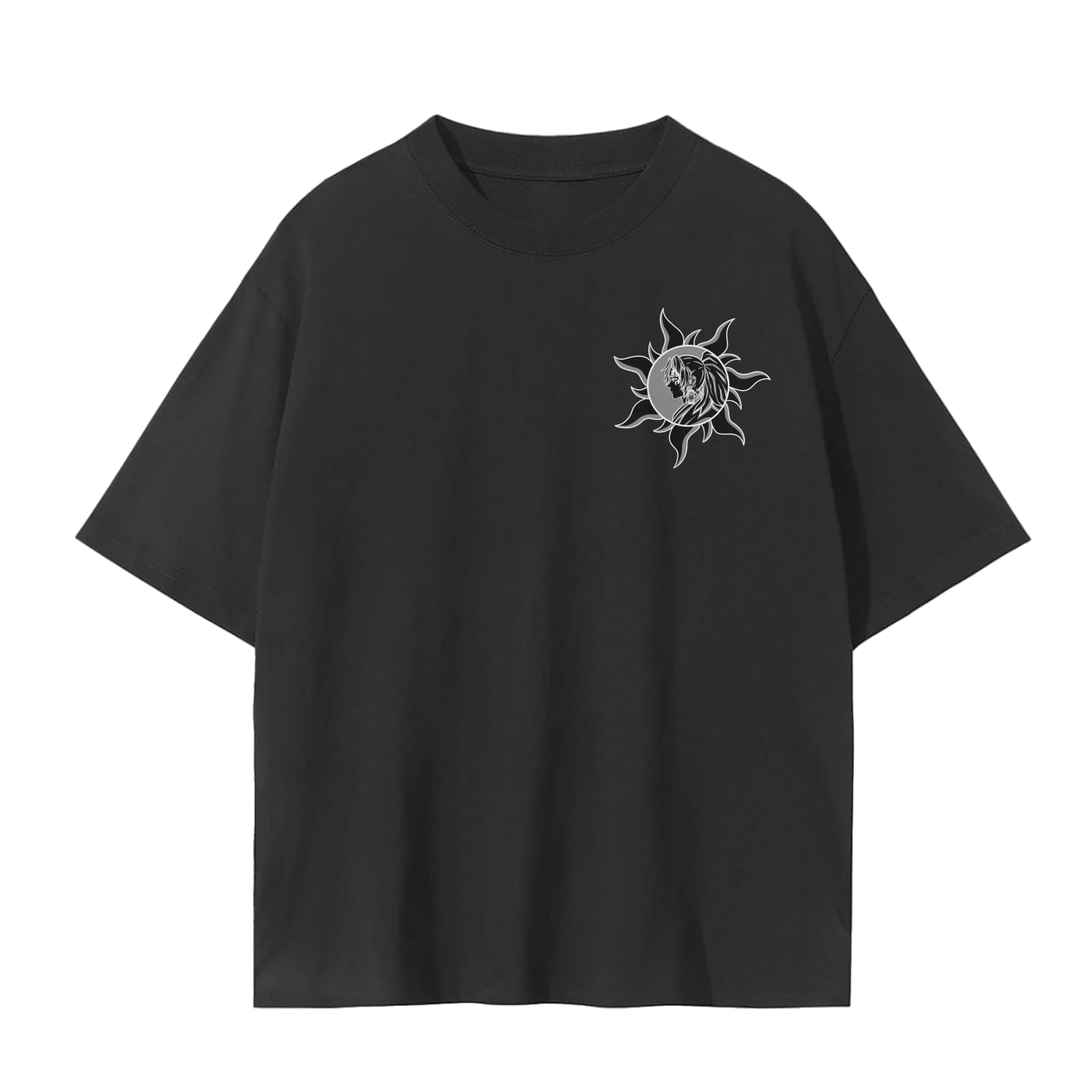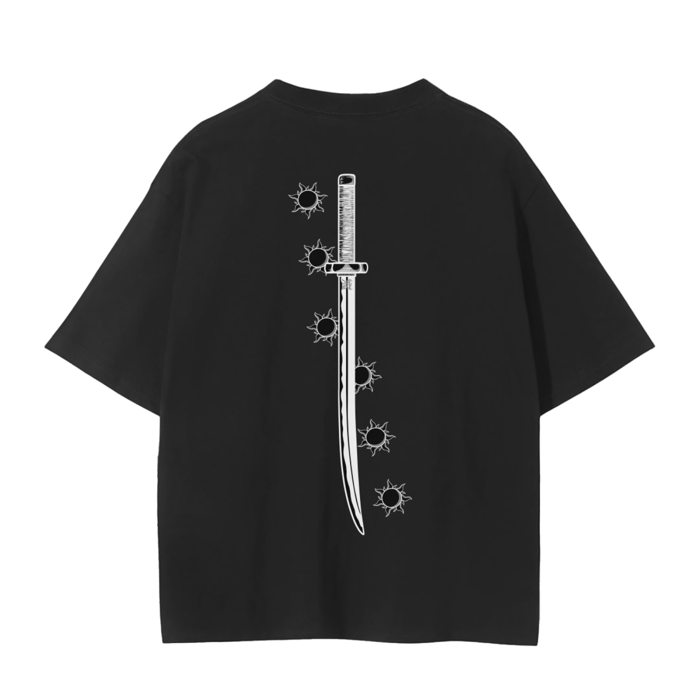 Channel the unmatched strength of the first Sun Breather. A blazing sun-katana arcs down the back, radiating raw power, while a bold sun crest rests over your heart on the front—an homage to Yoriichi’s eternal battle against the darkness.